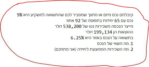 קיבלתם נכס מיזם או מתווך שמסביר לכם שהתשואה למשקיע היא 9%