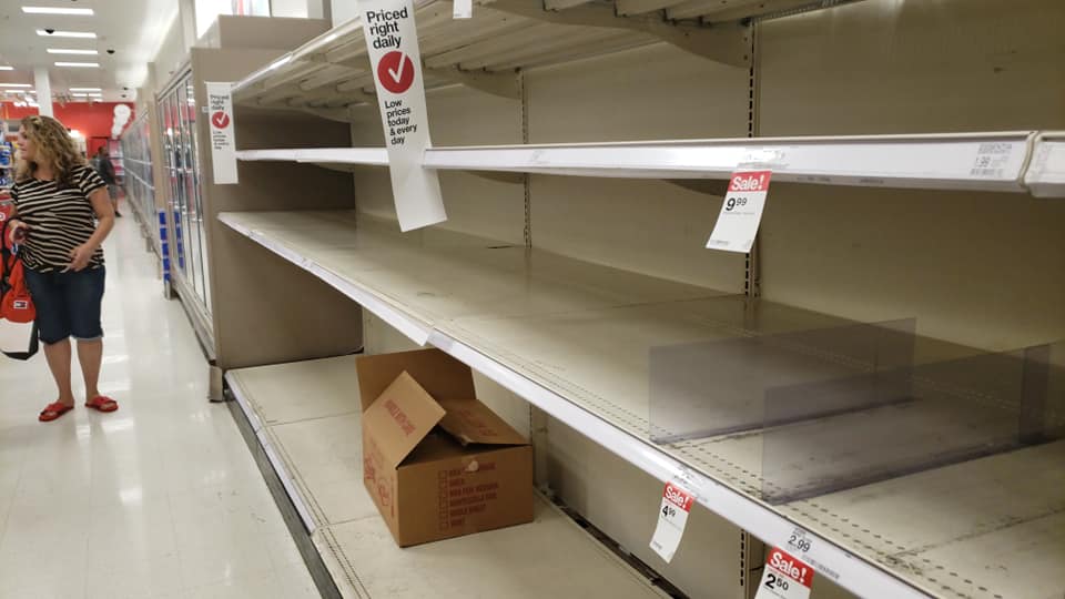 אני במיאמי ואתן לכם עדכון מהשטח לגבי מצב הלחץ של התושבים באיזור. בTarget ובמספר סניפים של וולמרט אין יותר מים ואין קופסאות שימורים, בתחנות דלק תורים ארוכים ואנשים ממלאים ג’ריקנים. בסניף היחיד של וולמרט שמצאתי מים, יש שוטר שמאפשר לכל קונה לקנות רק ארגז אחד של מים.