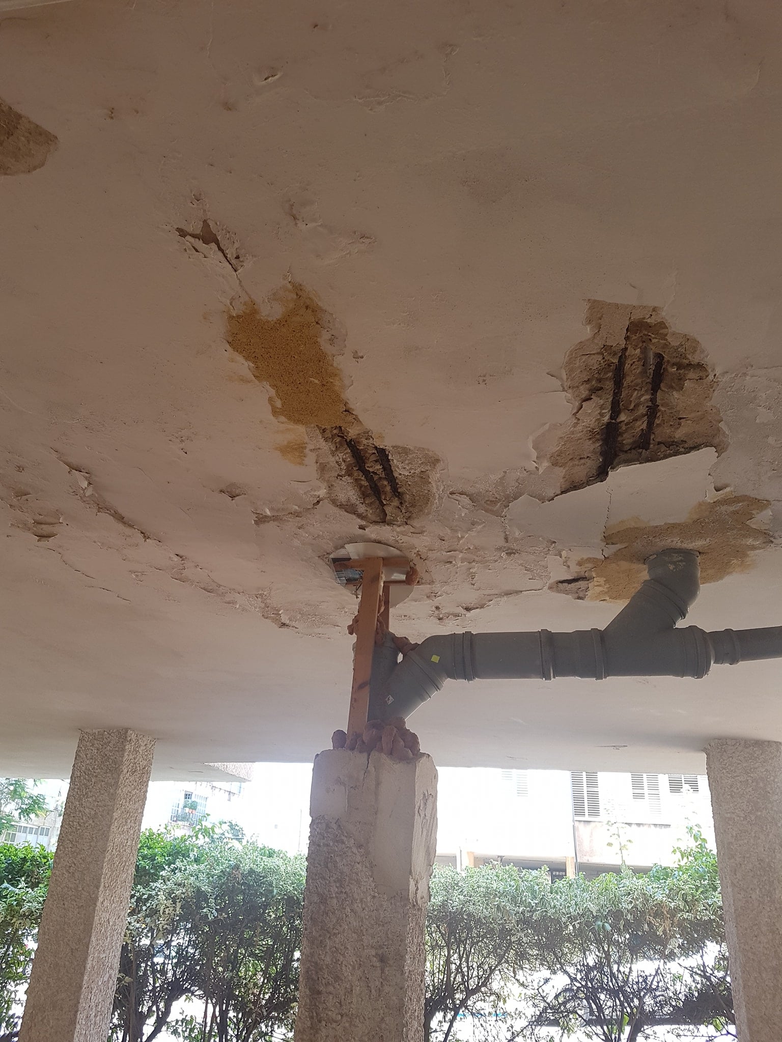 מה שיותר מדאיג מעבר לקו ביוב ונזקי מים זה שחתכו את העמוד ויש אולי בעיות קונסטרוקציה.