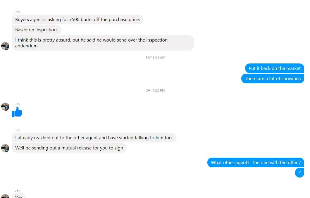 לפני ששלחתי לו הודעה שזה לא בא בחשבון שישלח טופס לשחרור מהעיסקה הוא כבר צלצל למתווך אחר שלקוח שלו נתן הצעה מתחרה.