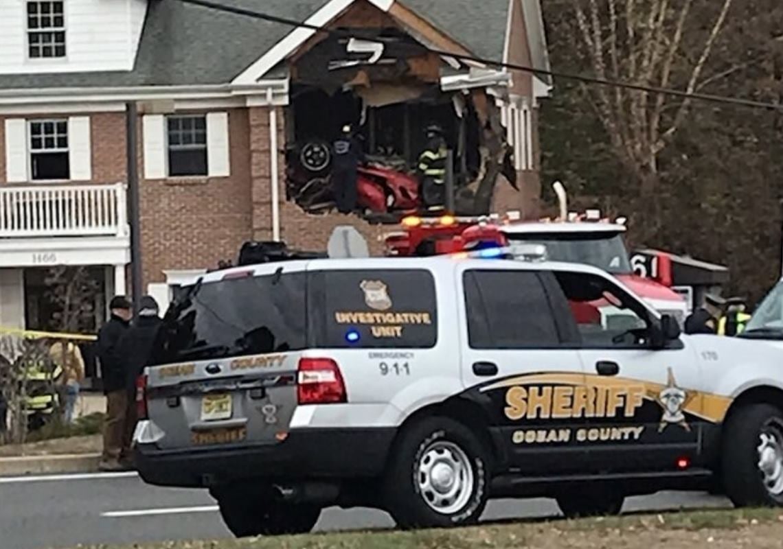 איך הוא הגיע לקומה השנייה?? תאונה קטלנית בניו ג'רזי: נהג פורשה איבד שליטה, המכונית התנגשה בקומה השנייה של בניין משרדים!