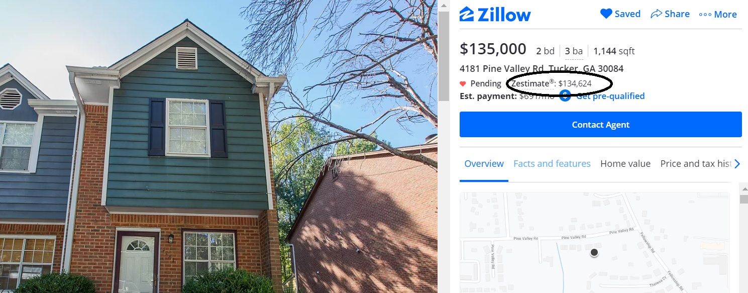 בתמונה , בית שמוערך על ידי זילו ורדפין ב 132 אלף דולר . זה שהמוכר ביקש 135 לא בילבל את זילו או את REDFIN , הערכת שמאי חזרה …איך לא 132 אלף ….