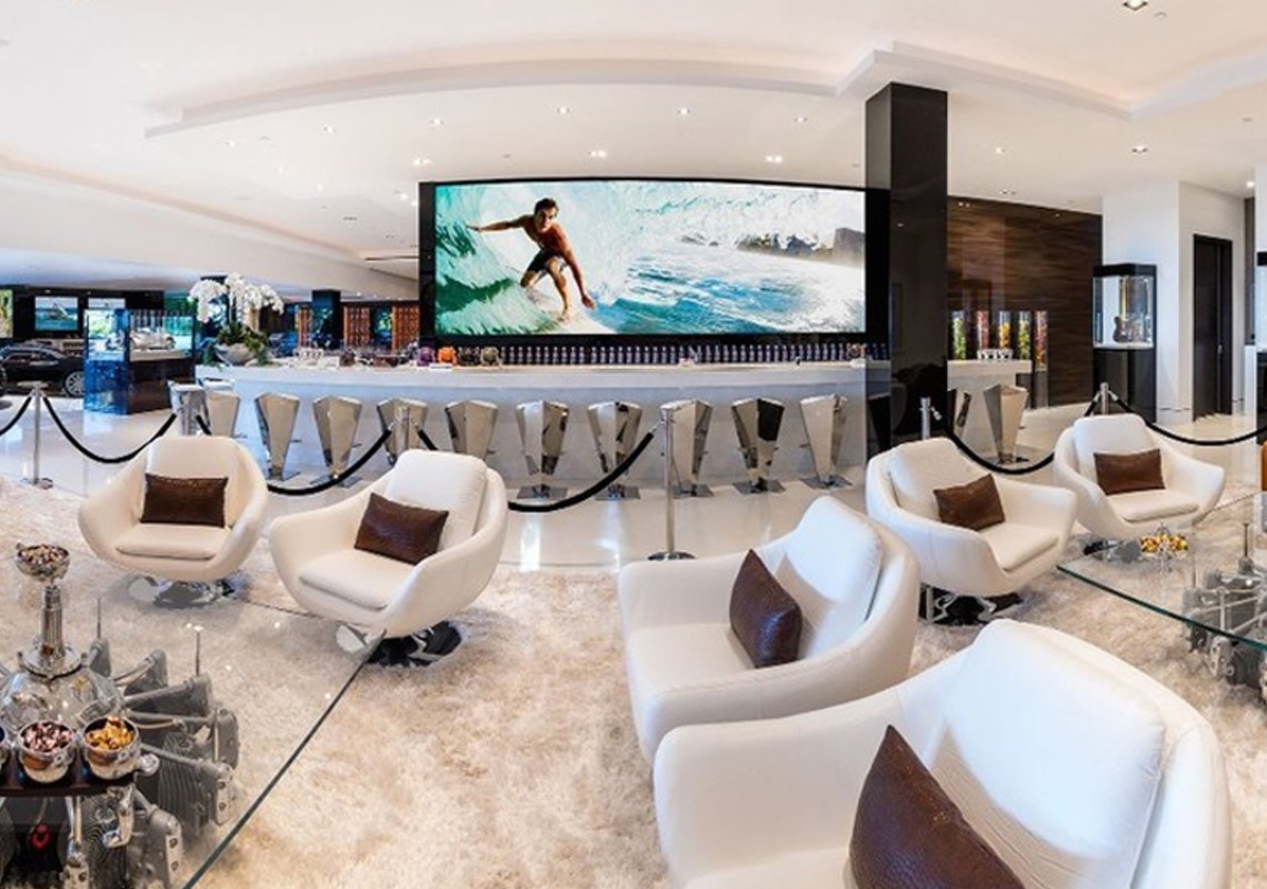 בבית המפואר ישנם 12 חדרי שינה ו-21 חדרי שירותים, אך זו רק ההתחלה. עוד ניתן למצוא בבית אולם קולנוע בעל 40 מושבים מפנקים, אולם באולינג, "חדר ממתקים" המשמש גם כחדר משחקים, חדר כושר, ספא ועוד.
