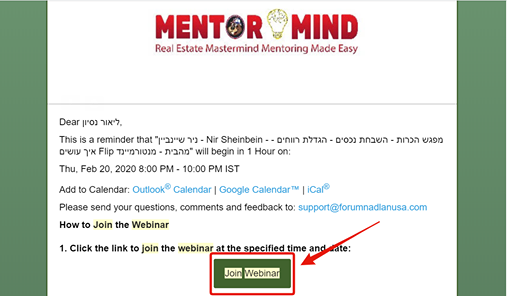 הודעה לכל מי שנרשם לוובינר היום בשעה 8 לגבי תוכנית מנטורמיינד עם ניר שיינביין – כך תצטרפו לוובינר !