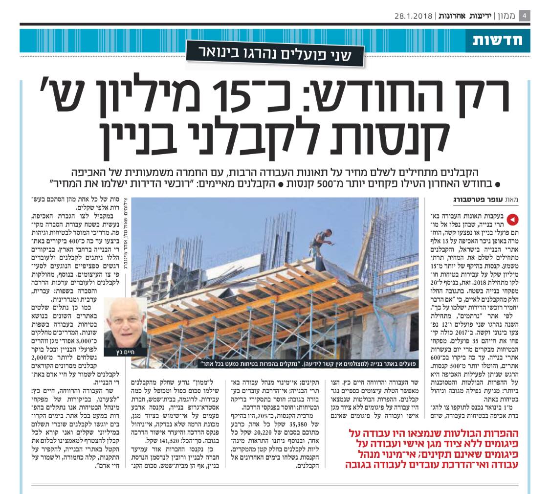 חשיפה הבוקר: הקבלנים מתחילים לשלם על נפילות הפועלים. בשבועיים הראשונים של 2018 -…