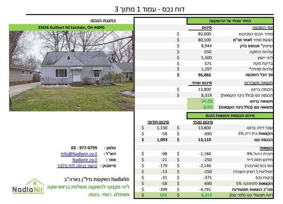 בסיכום וקיצור, המשקיעה שלי שבסוף קנתה את הבית קלטה את ההזדמנות, ועכשיו הנכס לא רק עושה תשואה חודשית נאה, אלא באזור איכותי ויציב מחיר ההנחה ממחיר השוק אחרי השיפוץ הפך להיות משמעותי ביותר.