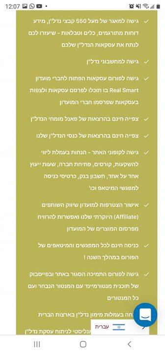 1. מנוי לימודי באתר – גישה למעל 550 קבצי נדלן, זירת השקעות, מחשבונים, ראיונות מצולמים עם מומחי נדלן, הקלטות ממפגשי הפורום ועוד.