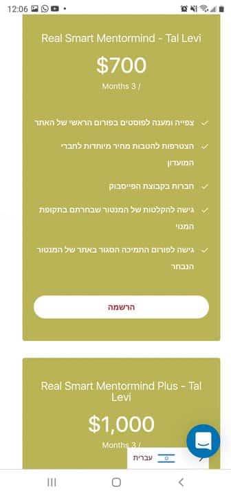 והטבות נוספות כפי שניתן לראות כאן בדפי ההרשמה לתוכנית של כל מנטור: