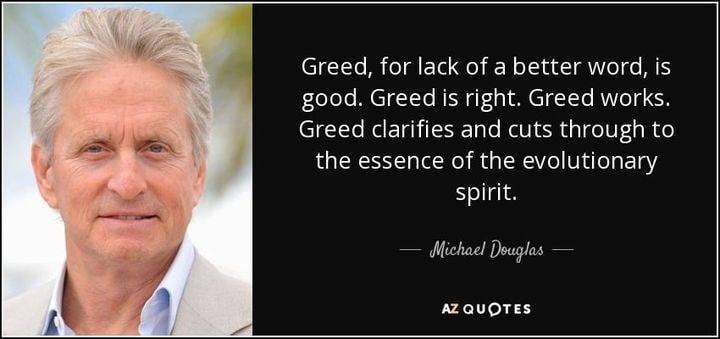 2 העדר זהות אינטרסים וגרידיות – “GREED IS GOOD” אחד המשפטים שכל מי שמכיר אותי יודע שאני הכי אוהב, ואין מצב שתעביר לידי יום ולא תשמע אותי מדקלם אותו לפחות פעמיים. אין שום בעיה עם גרידיות כשלעצמה, להפך… הבעיה עם חמדנות מתחילה כשאין זהות אינטרסים, אין שקיפות ואין בקרה. חברת הניהול צריכה לעמוד בפיתויים ולהיות במלחמה עצמית באופן יומיומי בין הרצון לתת שירות טוב למשקיע לבין הרצון לעשות כסף כאן ועכשיו. היא צריכה לעמוד בפיתויים אינסופיים לנצל חוסר הבנה / שליטה / מרחק שלנו המשקיעים.