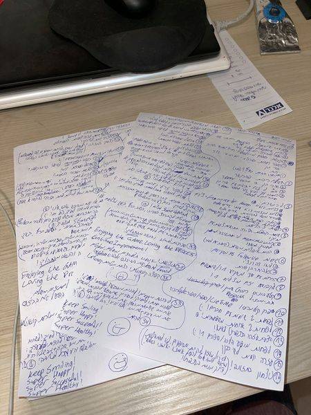 בתמונה- דפי תחקור שבועיים שלי, בהצלחה עם להבין את הכתב ????
