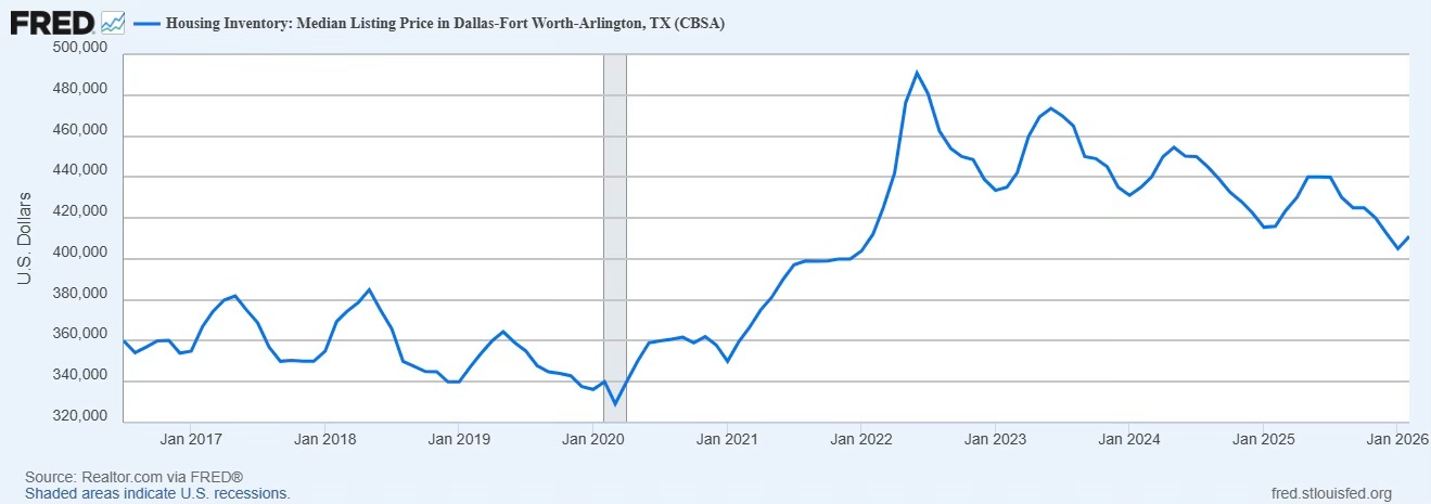 3. המספרים של DFW מגבים את הדיפ: שימו לב לגרף הזה מתוך הFRED, שמראה את מחירי הListing בDFW .